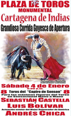 Apertura de la plaza de toros de Cartagena de los Indias este sábado 4 de enero de 2014 con una corrida goyesca.